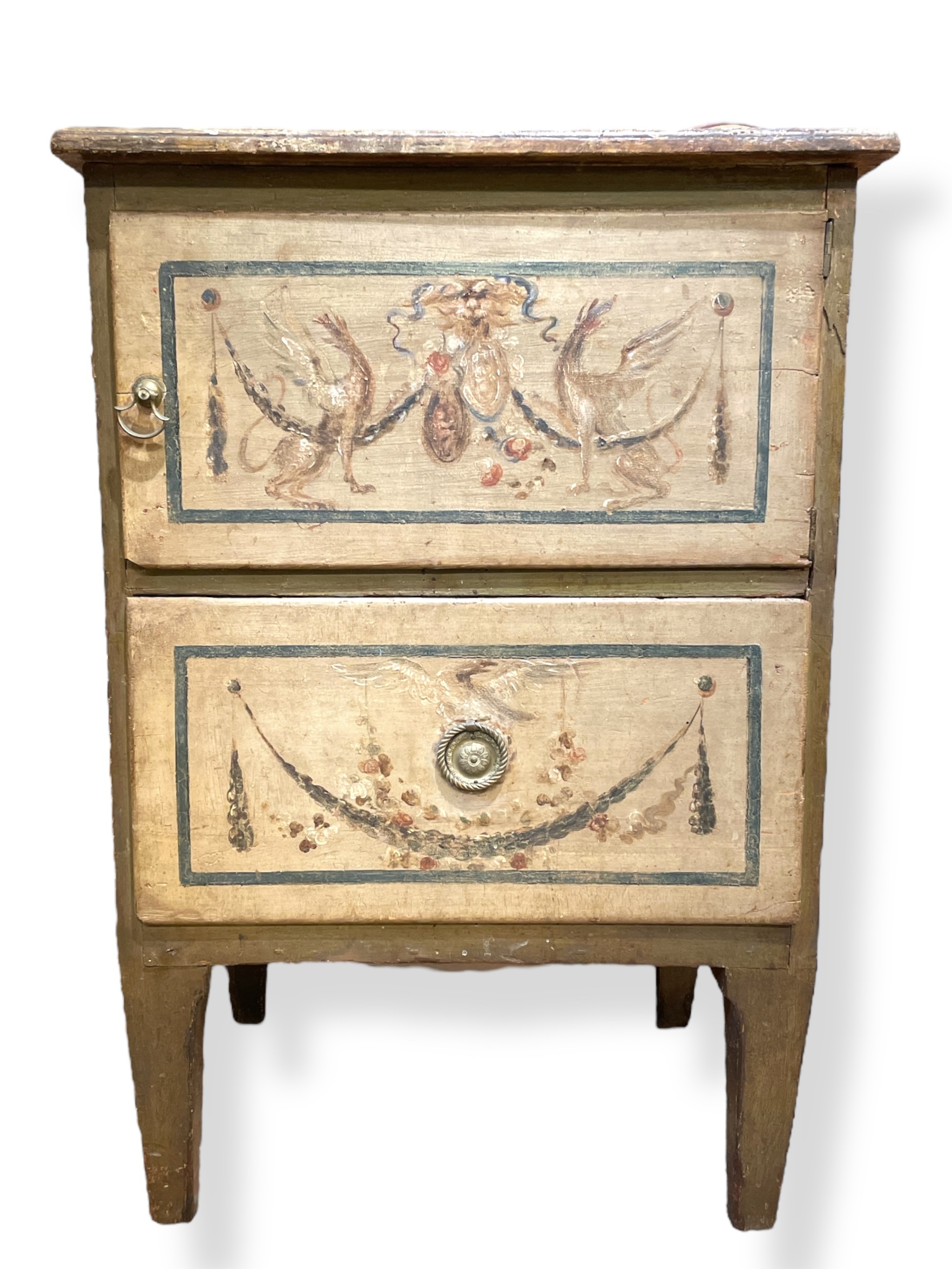 Pair of 18th C Italian polychrome bedside cabinets.