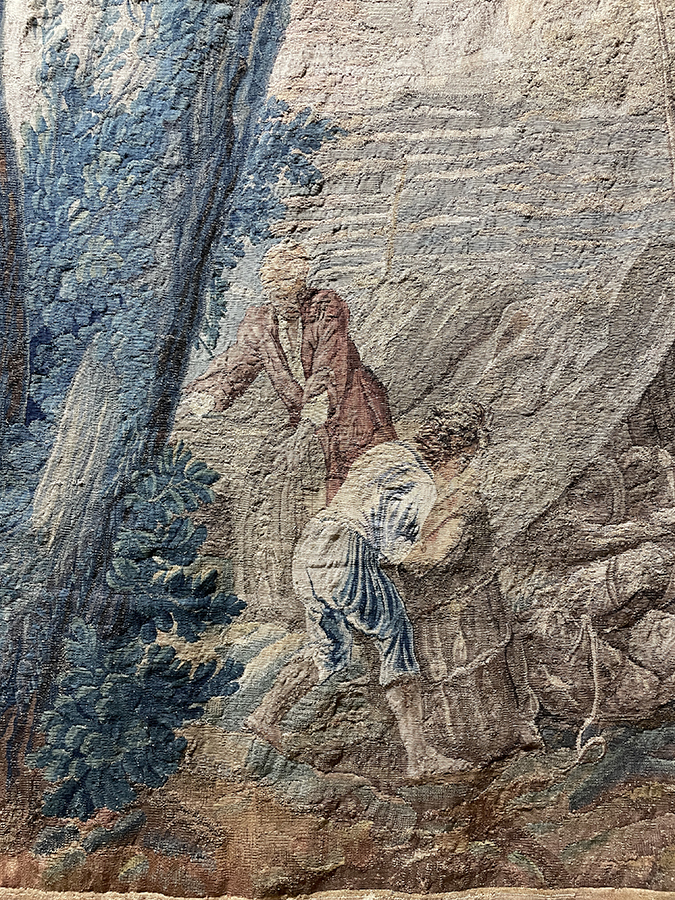 Tapestry scene -Figures near a port/ harbor 1600's