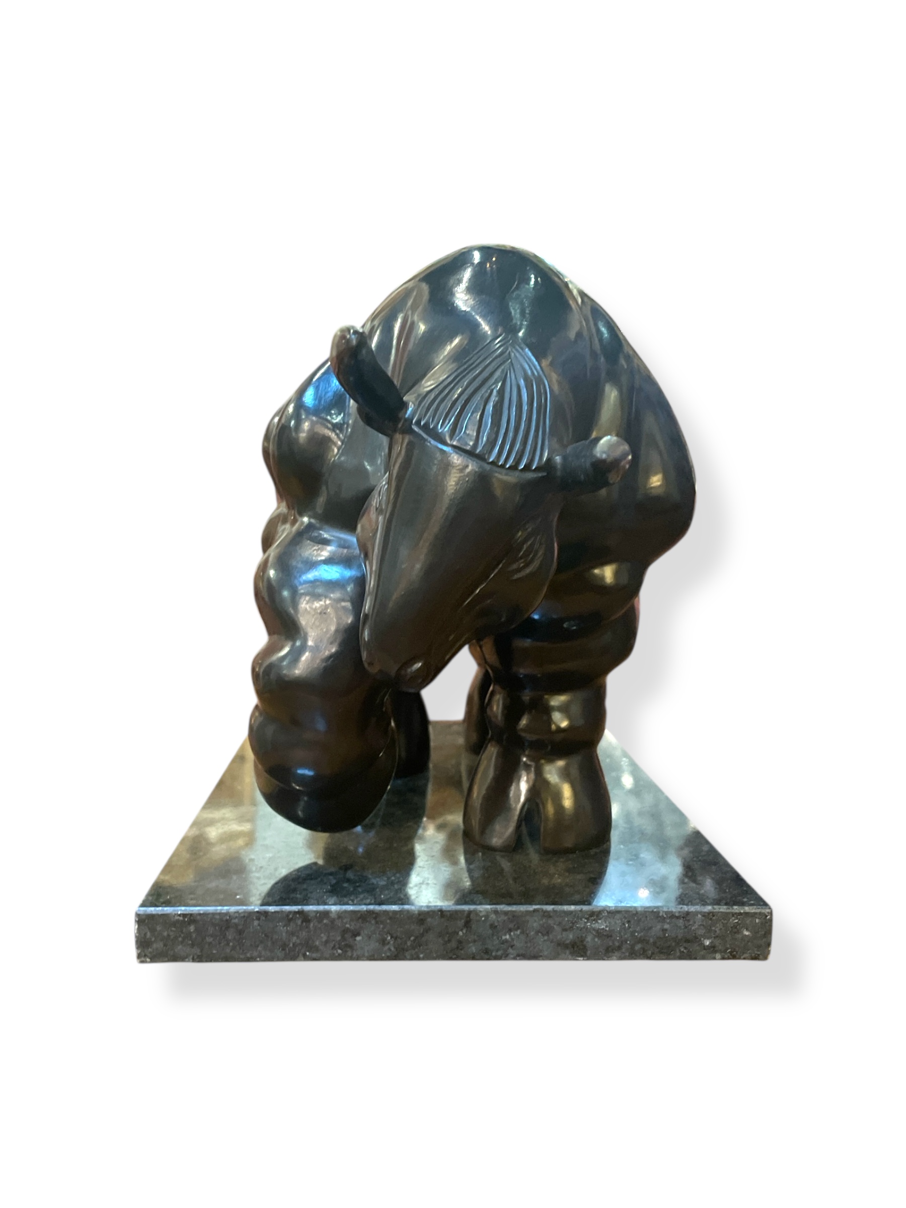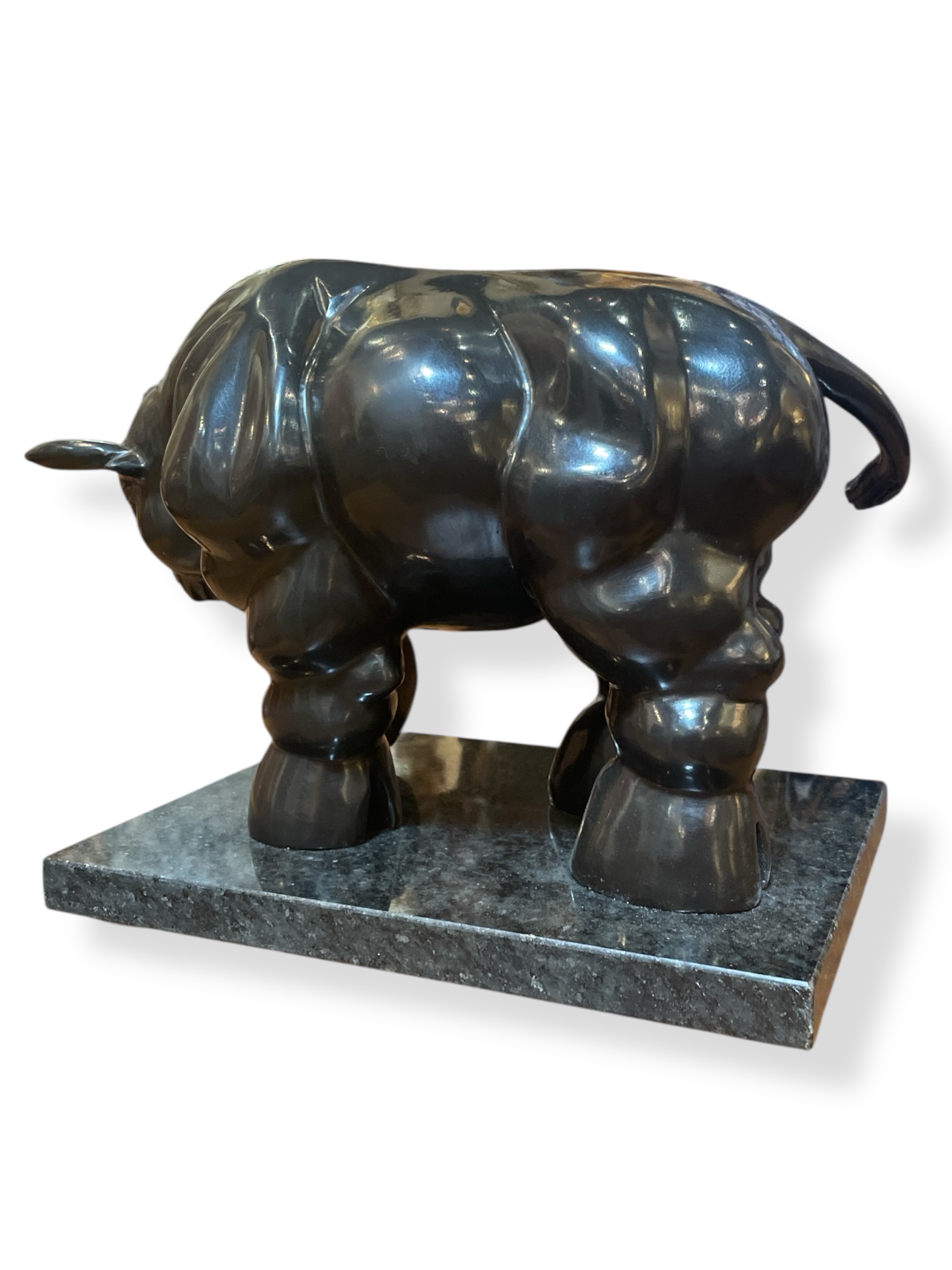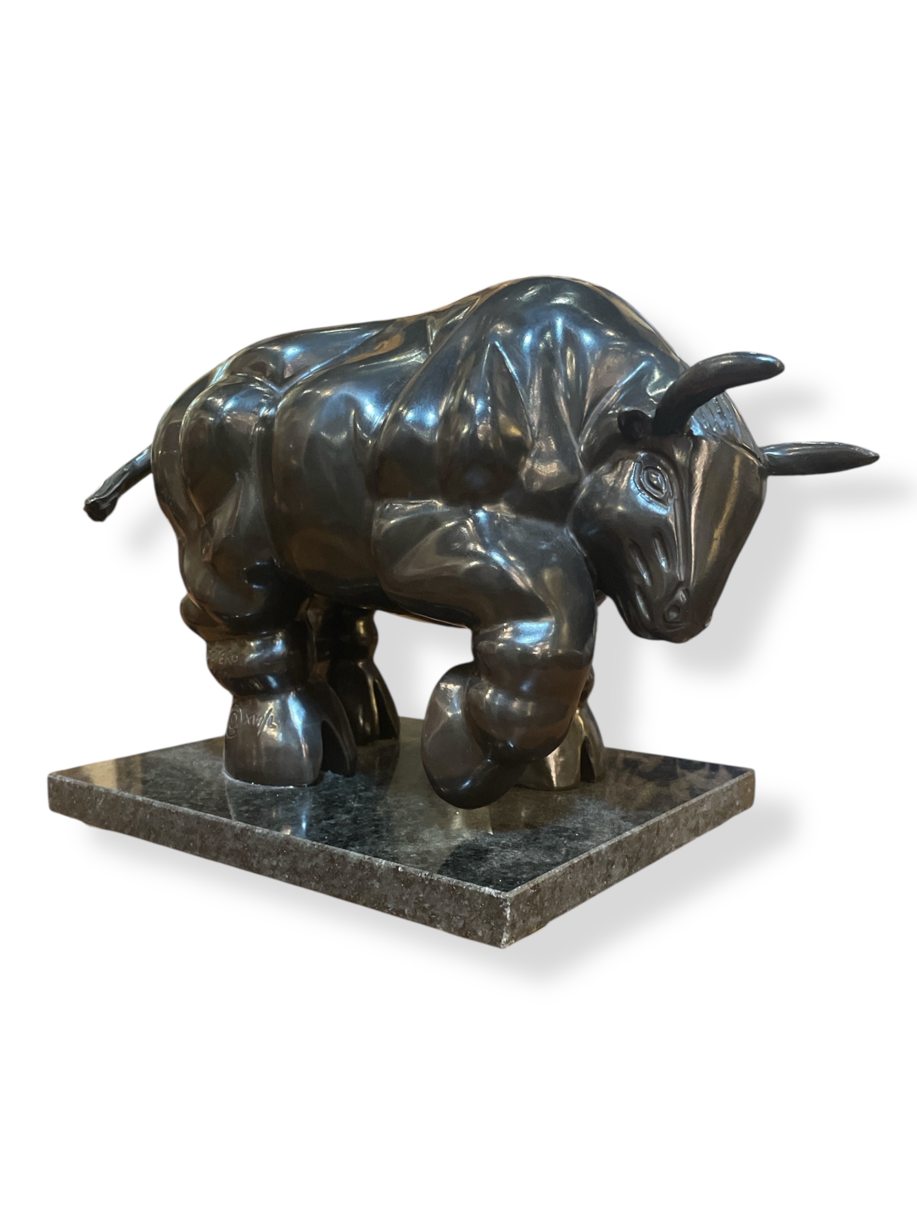 Patinated bronze sculpture after Fernando Botero (Columbian 1932-2023) of the "Bull', dated 1992, numbered XVI/L (16/50), Fonderia M, italy, on a black granite plinth.