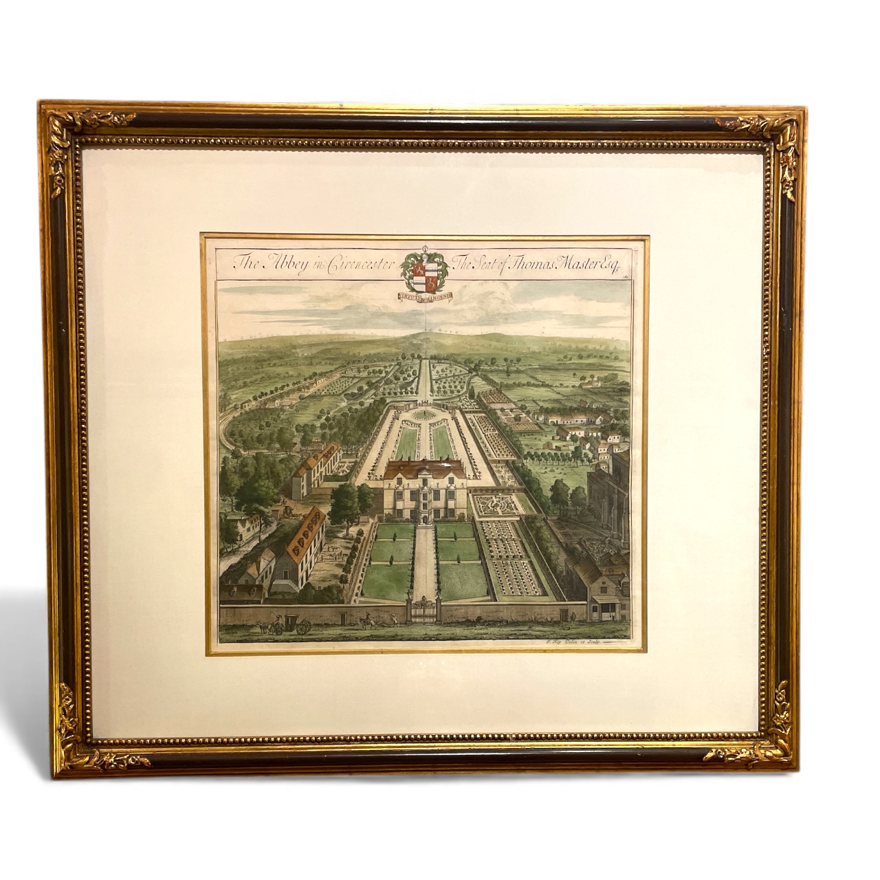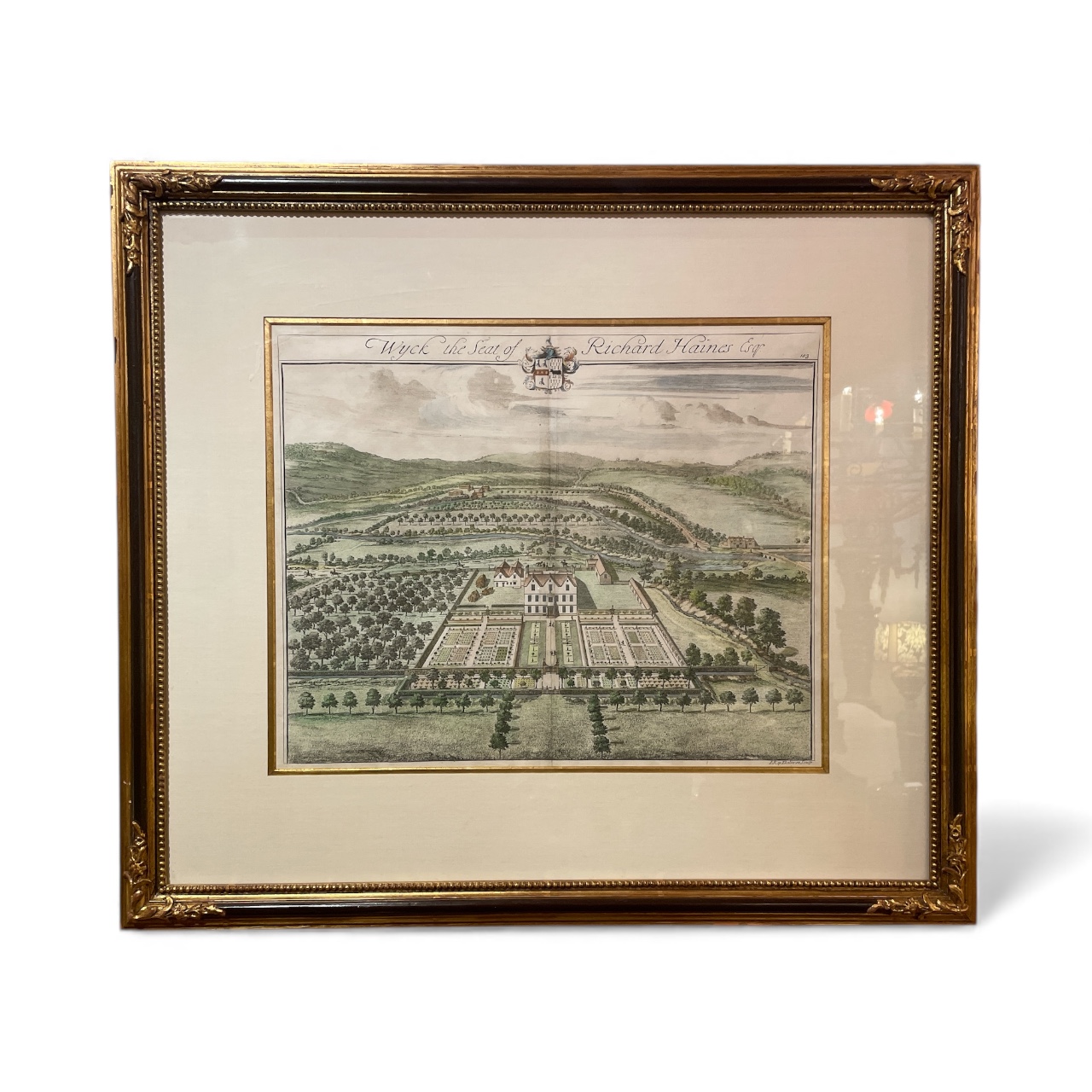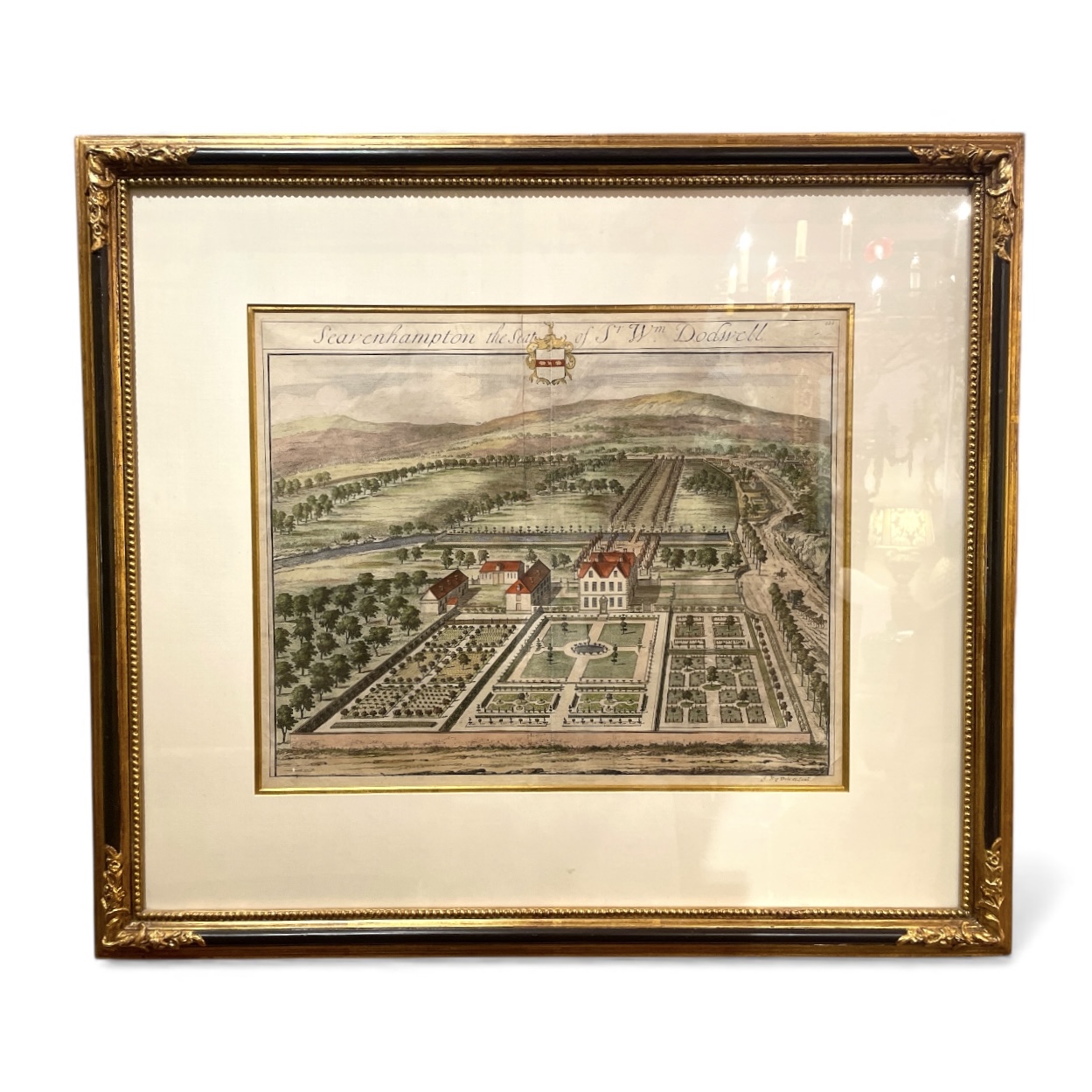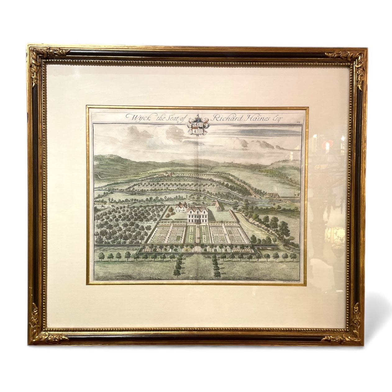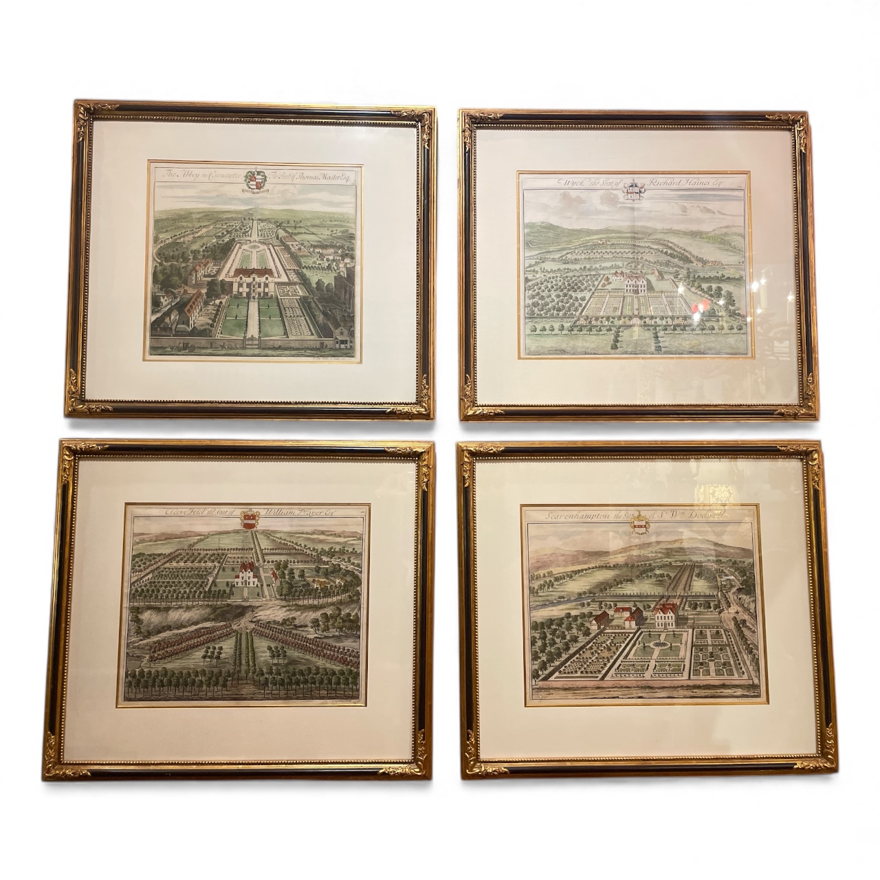 Four hand-colored 18th C English architectural prints, beautifully framed.