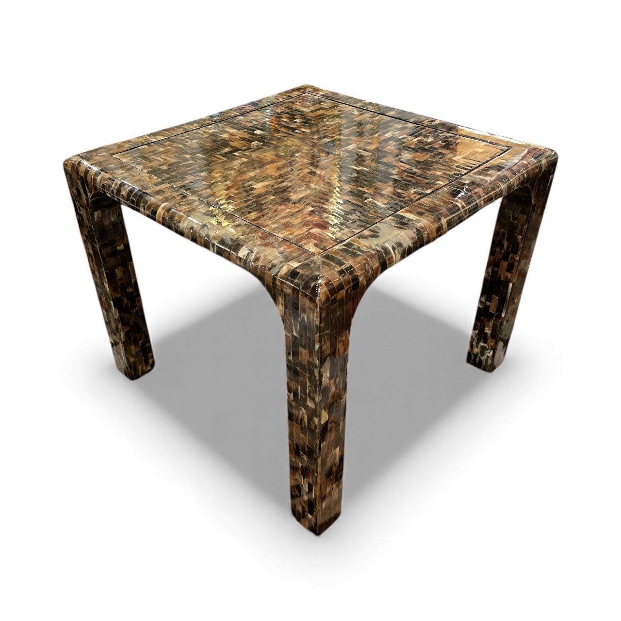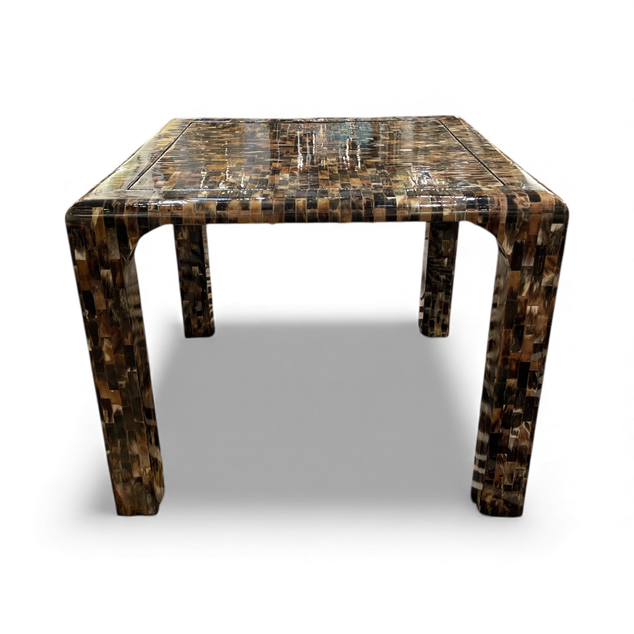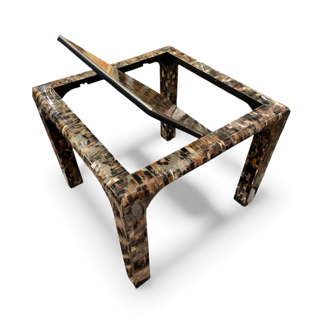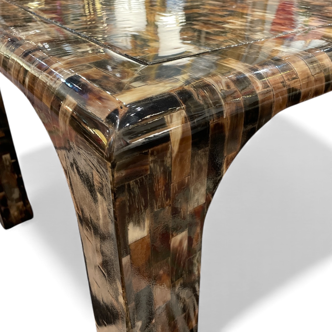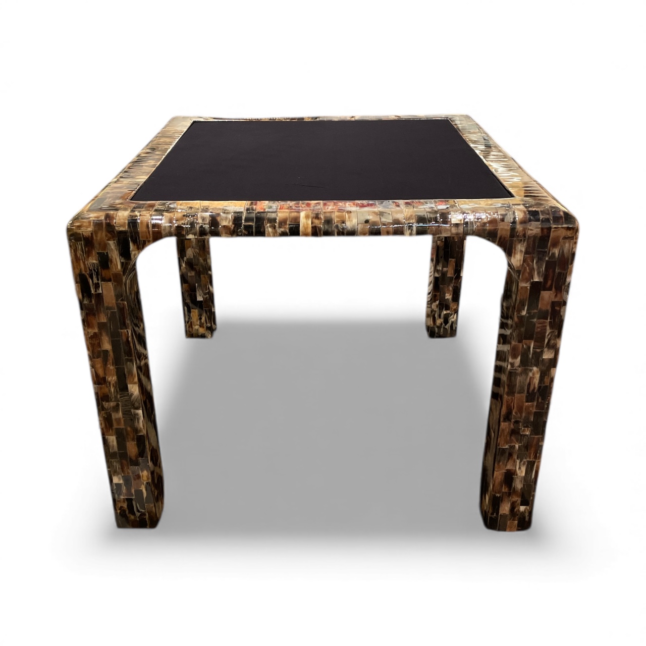 Vintage tessellated horn game table in the style of Karl Springer ( An iconic furniture stylist of the 20th C). * Note: Game table felt has damage.